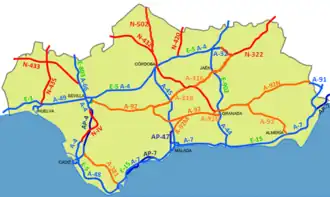 133. ^ a b Pozuelo, I. (2003). "Los sistemas de trasporte, las infraestructuras y el territorio". Geografía de Andalucía (Coor. López Antonio) (in Spanish). Barcelona: Ariel Geografía. ISBN 84-344-3476-8.