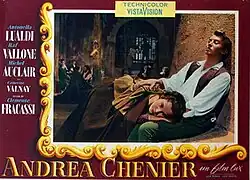 Andrea Chénier, also spelled Andrea Chenier, is a 1955 French-Italian historical musical melodrama film directed by Clemente Fracassi and starring Antonella Lualdi, Raf Vallone and Michel Auclair. It is loosely based on the eponymous 1896 opera by Umberto Giordano about the eighteenth century poet André Chénier.[1] The film's sets were designed by the art directors Flavio Mogherini and Franco Zeffirelli. It was shot using Technicolor and VistaVision.