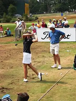 She was so shy as a junior, she used to deliberately three-putt at the end of a tournament to avoid giving the victory speech.[11] The coaches noticed and at the next tournament both the winner and the runner-up had to give a speech. Sörenstam decided that if she were going to have to face the crowd anyway she might as well win and the deliberate misses stopped.[6]