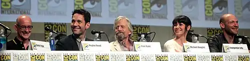 (L-R) Peyton Reed (director), Paul Rudd, Michael Douglas, Evangeline Lilly, and Corey Stoll at the 2014 San Diego Comic-Con