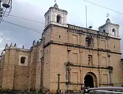 The first building of a cathedral was begun in 1545 with the debris brought from the destroyed settlement in the valley of Almolonga; however, its construction was hampered by frequent earthquakes throughout the years.[14] The city was the final resting place of the great Spanish chronicler Bernal Díaz del Castillo, and his remains were interred in one of the churches that was eventually ruined by earthquakes.
