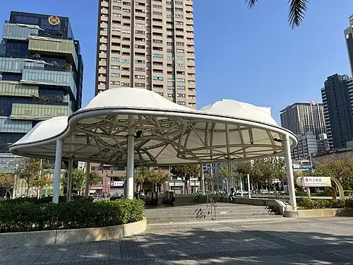 The station is a two-level, underground station with an island platform and four exits.[2] It is 217 meters long and is located at the intersection of Bo-ai 1st Rd. and Dashun Rd.[3]