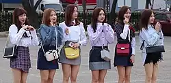 From left to right: Jinsol, Yena, Chaewon, Chaekyung, Rachel, and Naeun