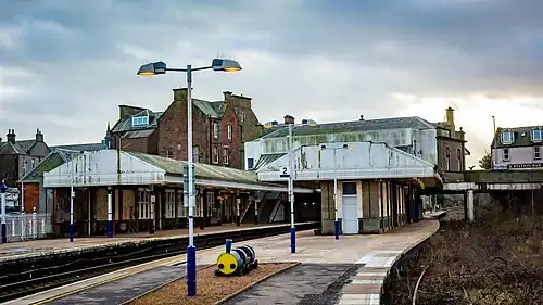 Arbroath railway station serves the town of Arbroath in Angus, Scotland. The station is 17 miles (27 km) east of Dundee on the line between Dundee and Aberdeen, between Carnoustie and Montrose. There are two crossovers at the north end of the station, which can be used to facilitate trains turning back if the line south to Carnoustie is blocked.[4] ScotRail, who manage the station, provide most of the services, along with CrossCountry, London North Eastern Railway and Caledonian Sleeper.