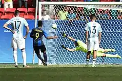 Argentina took part for the first time in the 1928 Olympic Games held in the Netherlands. Although the Olympics were restricted to amateur teams only, Argentina competed with its senior squad so football was not professional in the country until 1931.[1] The team advanced to the final after defeating United States with a thrashing 11–2 in the first round, and Belgium (6–3) in the second. In the semi-finals, the national team smashed Egypt by 6–0 to qualify for the final against Uruguay.