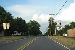 In Arkadelphia, Highway 51 becomes Hollywood Road and passes Magnolia Manor before an intersection with Highway 8. The two routes begin a concurrency running east, crossing I-30 at a diamond interchange. Highway 8/Highway 51 enter Arkadelphia as Pine Street, serving a mix of commercial and residential land uses before intersecting US 67 and Highway 7 (Tenth Street). The four highways overlap southbound as Tenth Street for two blocks, before turning onto Caddo Street and heading east toward downtown Arkadelphia, passing the historic Clark County Library.[6] At an intersection with Sixth Street, US 67 turns south toward the Arkadelphia Commercial Historic District, and the three state highways continue east to cross the Ouachita River on the Ouachita River Bridge. Shortly after the bridge, Highway 7 and Highway 8 split south toward Griffithtown.[7]