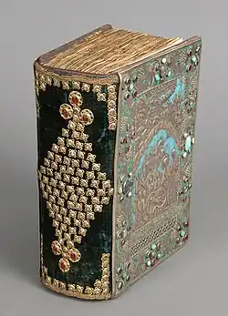 Artist Astuatsatur Shahamir Year c. 13th-17th centuryMedium Ink and tempera on parchment with a cover of silver, gilt, jewels, enamel Dimensions 25.4 cm × 17.1 cm (10.0 in × 6.7 in) Location Metropolitan Museum of Art , New York