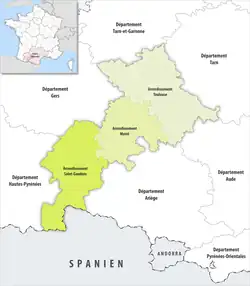 The 3 arrondissements of the Haute-Garonne department are:[1]