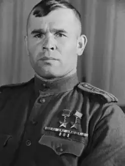 Arseny Vasilyevich Vorozheykin (Russian: Арсе́ний Васи́льевич Вороже́йкин; October 28 (O.S. 15) 1912 – 23 May 2001) was a squadron commander in the Soviet Air Force and fighter ace during the Second World War. He was twice awarded the USSR's highest honor, Hero of the Soviet Union, and went on to become a Major-General of Aviation.