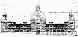 In 1883 John Horbury Hunt, an architect in private practice, was engaged by the gallery's trustees to design a permanent gallery. Though Hunt submitted four detailed designs in various styles between 1884 and 1895, his work came to nothing apart from a temporary building in the Domain. With raw brick walls and a saw-tooth roof, it was denounced in the press as the "Art Barn".[38]
