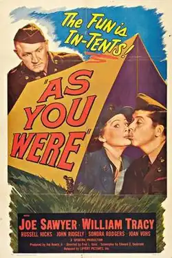 As You Were is a 1951 American service comedy film directed by Bernard Girard and Fred Guiol and starring William Tracy, Joe Sawyer and Russell Hicks.[1] Released by the low-budget Lippert Pictures, it is considered a B movie. It was one of eight films featuring Tracy as Sergeant Dorian "Dodo" Doubleday, and features footage from the production team's previous 1941 film Tanks a Million.