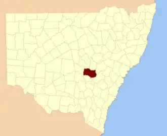 Ashburnham County, New South Wales is one of the 141 cadastral divisions of New South Wales. The Lachlan River and Belubula River is the southern boundary. It includes Parkes and Forbes.