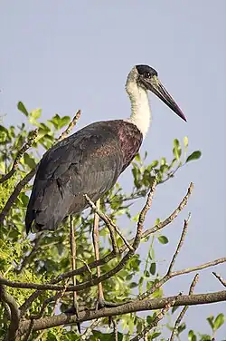 The Asian woolly-necked stork or Asian woollyneck (Ciconia episcopus) is a species of large wading bird in the stork family Ciconiidae. It breeds singly, or in small loose colonies. It is distributed in a wide variety of habitats including marshes in forests, agricultural areas, and freshwater wetlands across Asia.[2][3]