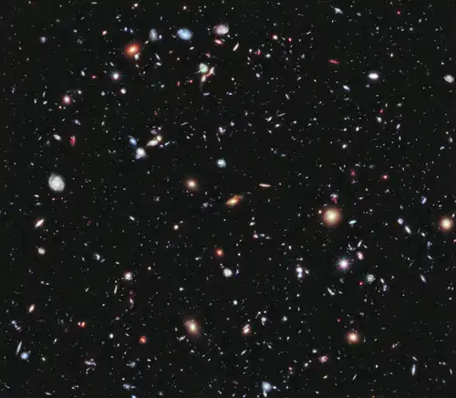 Physical cosmology, the study of large-scale structure of the Universe, seeks to understand the formation and evolution of the cosmos. Fundamental to modern cosmology is the well-accepted theory of the Big Bang, the concept that the universe begin extremely dense and hot, then expanded over the course of 13.8 billion years[110] to its present condition.[111] The concept of the Big Bang became widely accepted after the discovery of the microwave background radiation in 1965.[111] Fundamental to the structure of the Universe is the existence of dark matter and dark energy. These are now thought to be its dominant components, forming 96% of the mass of the Universe. For this reason, much effort is expended in trying to understand the physics of these components.[112]