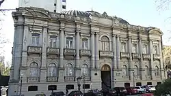In 1900, a building was inaugurated to house the institution. Located at the intersection of the Plaza de Cagancha ring road and Rondeau Street, the two-story building in an eclectic style had been started in 1897 by the architects José María Claret, Julián Masquelez and Emilio Boix.[5] In 1915, the team made up of the architects Horacio Azzarini, Julio Vilamajó and the sculptor José Luis Zorrilla de San Martín was in charge of decorating the large assembly hall on the upper floor.[6]