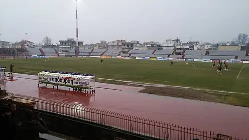 - ^ "Serres Stadium – Record attendance: 14,200 (Panserraikos FC vs AE Larissa FC—in 1972)". stadia.gr. 21 February 2011.