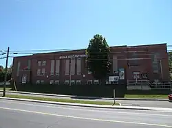 Robert Ferguson was granted the concession for the territory in 1850.[12] A school was opened at that time on Roseberry Street in Campbellton which served Atholville. This building sparked the development of the urban area towards Atholville in the west.[18] The stocks of quality trees were exhausted in 1855 but fish canning and shingle factories opened.[18] The Intercolonial Railway passed through the village in 1876 which represented a significant economic opportunity.[5] Athol House was used as a weather station[30] but was destroyed in a fire in 1894.[31] The Shives company inaugurated the largest shingle works in the Maritime Provinces in 1901.[32] The Mowatt and WH Miller mills became operational in 1902 and 1905 respectively.[12] The first school was founded in 1905.[12] The post office was founded in 1906.[33] The church opened in 1909 - Atholville was then a mission of Campbellton.[32] The parish of Our Lady of Lourdes was set up in 1913.[34] The construction of the Fraser mill by the Restigouche Company began in 1919.[12] The plant was inaugurated in 1928[35] and became the third largest paper producer in the north of the province in 1929.[36] Atholville high school opened its doors in 1930.[12] The Daughters of Mary of the Assumption settled in 1934.[32] The credit union was founded in 1938.[37] The local improvement committee was founded in 1947.[12] A waterworks and sewer were inaugurated in 1950.[12] The Versant-Nord school was inaugurated in 1951[38] in the same year as the fire station.[12] The Brothers of the Sacred Heart settled in the village in 1956.[32] The J. C. Van Horne Bridge was inaugurated in 1961 in Campbellton which enabled faster travel to Quebec and contributed much to the economy.[18] Radio Engineering Products opened a factory around 1963.[32]