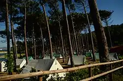 During the summer, daily boats link Cíes with the ports of Vigo, Baiona and Cangas, and Ons with Portonovo, Sanxenxo, Bueu, Marín and Pontevedra. Daily affluence is limited and all visitors are required to previously book an authorization request from the Galician Government.[17] In Cíes there is a camping area but permissions have to be reserved at the Vigo port. Access to Salvora and Cortegada is more restricted, requiring organized visits.[18] There are no waste bins on the islands. Visitors are required to take their litter back to the mainland.