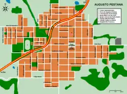 Augusto Pestana is a Brazilian municipality in the State of Rio Grande do Sul. It is located at 28°31′01″S 53°39′01″W, at an altitude of 390 m (1,279 feet). The city is 320 km northwest of Porto Alegre, 1,540 km southwest of Brasília and just 120 km east of the border with Argentina.[2]