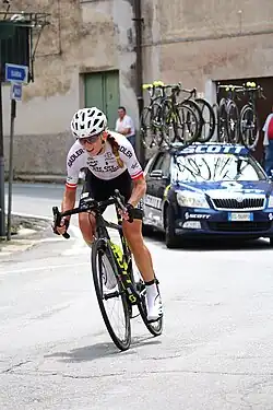 Austrian riders qualified for a maximum of two quota places in the men's Olympic road race by virtue of their top 15 final national ranking in the 2015 UCI Europe Tour.[45] One additional spot was awarded to the Austrian cyclist in the women's road race by virtue of her top 100 individual placement in the 2016 UCI World Rankings.[46] The entire road cycling squad was named to the Austrian roster for the Games on 12 July 2016.[47] Stefan Denifl and Georg Preidler both competed in the men's individual road race, with the former failing to finish and the latter placing 44th with a time of 6:29.42. The pair were later implicated in a blood doping scandal, with Denifl in particular being accused of doping in a timeframe including the Olympics.[48] Priedler fared better four days later at the men's individual time trial, finishing 16th out of 35 starting riders with a time of 1:16:02.36.[49] Martina Ritter, who won the Austrian National Time Trial Championships two months earlier, competed in the women's individual road race. According to Ritter, she fell and hit her ribs in the second lap, which led her to struggle in the last climb. She finished in 46th place with a time of 4:02:07.[50][51]