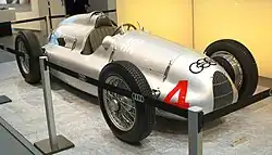The Auto Union Grand Prix racing cars types A to D were developed and built by a specialist racing department of Auto Union's Horch works in Zwickau, Germany, between 1933 and 1939, after the company bought a design by Dr. Ferdinand Porsche in 1933. The Auto Union type B streamlined body was designed by Paul Jaray.[1]