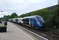 In 2024, all the Class 221 Super Voyagers were replaced by 23 new trains from the Hitachi A-train family, with maintenance taking place at Alstom's Oxley TRSMD depot in Wolverhampton.[48][49] These trains are divided into thirteen Class 805 bi-mode multiple units and ten Class 807 electric multiple units.[50] Although the units have the same top speed, they do not tilt like the Class 390 Pendolinos nor the Class 221 Super Voyagers they replaced. The Class 805s are used on services to Chester, Wrexham General and North Wales, and the Class 807s are used on services to Birmingham New Street, Blackpool North and Liverpool Lime Street (alongside the Pendolinos).[46][51]