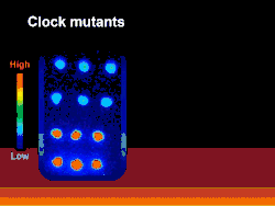 The S. elongatus luciferase reporter system was used to screen for clock gene mutants, of which many were isolated.[23] The figure shows a few of the many mutants that were discovered. These mutants were used to identify the core KaiA, KaiB, KaiC clock genes.[1]