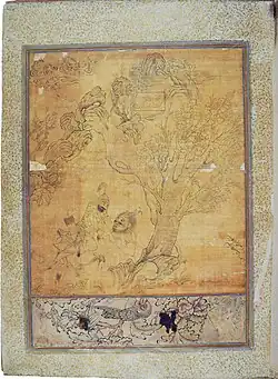The Bahram Mirza Album is the art collection of the Safavid prince Bahram Mirza Safavi, compiled by Dust Mohammad Haravi between 1543 and 1545.[1][2] Kept in the Topkapı Palace in Istanbul since the second half of the 16th-century, it appears to have had a significant influence on Safavid Iran's perception of a unique Persian artistic style.[3] It includes works by various distinguished artists such as Kamal ud-Din Behzad, Ahmad Musa, Abd al-Hayy, Jafar Tabrizi, Sultan Ali Mashhadi, Shah Mahmud Nishapuri, and Anisi.[1] The double-spread introduction of the album, which is typically devoted to court portraits, features an image of Ali, further emphasizing the Safavids' spiritual heritage from him. In the preface, Ali is referred to as the "first Islamic painter". The album also contains numerous Chinese paintings, which is not specifically mentioned in the preamble.[4]
