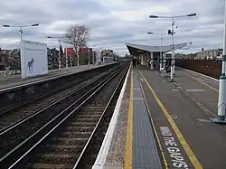 The original station was on the west side of Balham High Road; it was re-sited by the LB&SCR in 1863 as part of works to widen the line, and improve the route between East Croydon and Victoria.[10] Further remodelling of the line was undertaken in 1890 and 1897 to increase capacity.[11] It was named Balham then renamed Balham and Upper Tooting on 9 March 1927, reverting to Balham on 6 October 1969.[9]