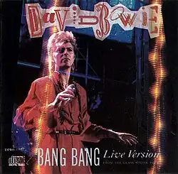 Pop's friend David Bowie covered "Bang Bang" for his 1987 album Never Let Me Down. When asked about his choice of including Pop's song on the album (instead of perhaps co-writing a new song), Bowie stated "Iggy's done so many good songs that people never get to hear ... I think it's one of his best songs, 'Bang Bang,' and it hasn't been heard, and now it might be."[4] Released as a promotional single in late 1987, the live version includes Peter Frampton on guitar. In 2018, Bowie's original album version was re-engineered as part of Bowie's posthumous Never Let Me Down 2018 release.