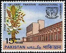 The Pakistani government set up the Commission on National Education at the end of 1958 to propose how to reorganise the country's education system.[3] One recommendation in the commission's 1959 report was to set up an agricultural university in East Pakistan. There was already the East Pakistan College of Veterinary Science and Animal Husbandry in Mymensingh. The government chose to upgrade the college to East Pakistan Agricultural University.[4] On 18 August 1961, the government did so by promulgating the East Pakistan Agricultural University Ordinance, 1961.[5] Soil scientist M Osman Ghani was appointed the university's first vice-chancellor on 2 September 1961.[6]