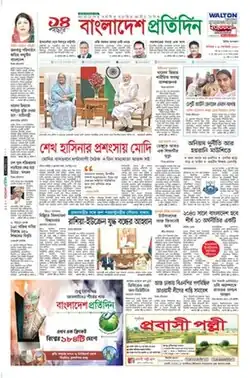 Bangladesh Pratidin (lit. 'Bangladesh Everyday') is a Bengali-language daily newspaper in Bangladesh.[2][3] It was founded on 15 March 2010.[1] Bangladesh Pratidin tops the list of highest circulated dailies in the country out of 345 newspapers published from Dhaka and elsewhere, the information minister told parliament 10 March 2014.[2] Abu Taher is the Acting Editor of Bangladesh Pratidin.[4] Bangladesh Pratidin is a subsidiary of East West Media Group (EWMG), which is owned by Bashundhara Group. On behalf of EWMG, the publisher of the newspaper is Moynal Hossain Chowdhury.