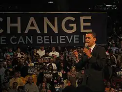 302. ^ "Candidate Obama packs ISU's Hilton Coliseum" The Des Moines Register, February 11, 2007.