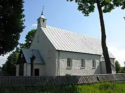 There is almost no verifiable information about Barbora's short life, which is shrouded by various hagiographical narratives.[1] She was the only child born into a noble family of Umiastowskis.[2] Her mother died early and she had a strict stepmother. Local people tell stories about her care for the sick and generosity for the beggars.[2] She would intercede on behalf of serfs and walk to the church on her knees.[1] It is said that her exceptional piousness and devotion to God displeased and angered her father. She wanted to become a nun, and even joined a Franciscan monastery in Riga, but her non-believer father would not allow it.[3] Narratives tell that she jumped out of the second floor of the manor to escape her father's wrath, and died of injuries.[1][4] In a document from 1876, vice-governor Vasily Ryzhkov of Kovno Governorate first recorded the claim that Barbora died escaping her father's lust and thus remained a virgin.[5]