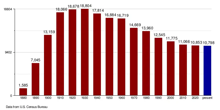 | 2024 (est.) | 10,798 | [10] | −0.5% |