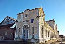 In 2004, it had a public support service for the National Railway Network, and four manoeuver tracks.[19] The station was equipped with a distribution center, to sort mail transported by rail, having its own stamp.[20] This Barreiro station served as a connection between trains from the region south of the Tagus River, and as a fluvial port for passengers and goods, with connections to Lisbon.[21][22] It was taken out of service with the construction of the new structure in 2008,[10][11] and the building was left in disrepair.[23] It was declared in 2018 as having a "under classification" status (Diário da República 2nd Series, No. 30 of February 12) in the listing process of the Barreiro Railway Complex.[18]