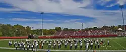 Although the village of Barrington incorporated in 1865,[6] the area did not have a dedicated permanent high school until 1949.[7] Before that, Barrington had a K-12 school on Hough Street. On February 8, 1947, the village held an election to choose a site for a new high school.[7] Of approximately 1,414 ballots cast, 1,013 were cast in favor of selecting the current location on West Main Street.[7] Voters also granted the village authority to purchase the 70-acre site, issue bonds for the high school's construction, and build the high school.[7] The original purchase price for the site was $37,000.00.[7] At the time, some residents complained that the tract bought had been too large; the opposition countered that unless the tract stretched far to the north, other residents and/or businesses might purchase that land, and the board would not be able to buy the land as cheaply later.[7] The Consolidated High School Board of Education, now Community Unit School District 220, consulted authorities on location, educational needs and the most fitting type of building allowing for future planning.[7] The board engaged the architectural firm of Perkins and Will to design the original structure.[7] The village issued $940,000.00 in bonds for the site and building; however, due to rising construction prices at the time, the high school as planned could not be completed for that amount.[7] On June 12, 1948, an election increased the authorization for such bonds by an additional $328,000.00 by a decision of 388 to 71.[7] Groundbreaking on the high school took place on July 10, 1948, and engineer George Gilfeather supervised the ensuing construction almost daily.[7] Classes began in the new building on September 12, 1949 under Superintendent F.C. Thomas.[7]