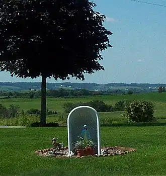A bathtub Madonna (also known as a lawn shrine, Mary on the half shell, bathtub Mary, bathtub Virgin, and bathtub shrine) is an artificial grotto typically framing Our Lady of Lourdes, commonly found in Catholic regions of the U.S.