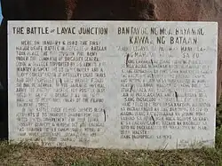 The main force of Homma's 14th Area Army came ashore at Lingayen Gulf on the morning of 22 December. The defenders failed to hold the beaches. By the end of the day, the Japanese had secured most of their objectives and were in position to emerge onto the central plain.[8] Facing Homma's troops were four Filipino divisions: the 21st, the 71st, the 11th, and the 91st, as well as a battalion of Philippine Scouts backed by a few tanks.[11] Along Route 3—a cobblestone road that led directly to Manila[11]—the Japanese soon made contact with the Filipino 71st Division. At this point the action of the American artillery stalled the Japanese attack. However, Japanese planes and tanks entering the action routed the Filipino infantry, leaving the artillery uncovered.[8] A second Japanese division landed at Lamon Bay, south of Manila, on 23 December and advanced north.[12]