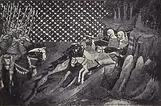 An allegorical painting of Art MacMurrough-Kavanagh (right) meeting the Earl of Glouster. | |||||||
