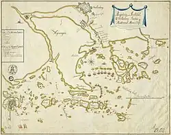On March 27, 1719, a Dano-Norwegian naval force, consisting of four ships of the line and a frigate, anchored in Rivö bay outside of Gothenburg. The blockading force was under the command of Tordenskjold, who had recently been promoted to the lower admiral rank of schout-bij-nacht. To avoid endangering the peace conference that was taking place in Stockholm in the spring, Tordenskjold had been ordered not to assault Gothenburg.[31] In early June, the blockading naval force had increased to seven ships of the line, two frigates, four barges, two floating batteries, one bombarderskip, five galleys and two galiots. The smaller Danish vessels attempted to halt Swedish naval traffic between Nordre river and Marstrand. In mid-June, an additional 26 Danish merchant ships arrived from Öresund with storage for the Danish blockading fleet.[32]