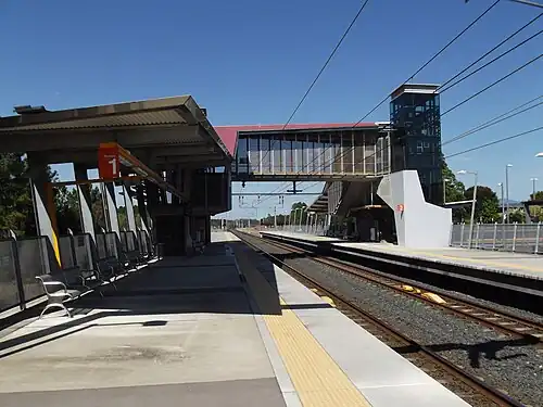 Beerburrum station was originally a single platform with a crossing loop. As part of the construction of a new 14 kilometre alignment for the North Coast line from Caboolture to Beerburrum, a new station was built immediately to the east, opening on 14 April 2009. Beyond Beerburrum, the line becomes single track.[4][5] It is scheduled to be duplicated to Landsborough by 2021.[6]