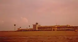 The airport opened on 23 April 1954, replacing the much smaller Bir Hassan Airfield which was located a short distance north. At the time of its opening, the terminal was very modern and it featured an excellent spotters terrace with a café. The airport consisted of two asphalt runways at the time. Runway 18/36 at 3,250 metres (10,663 ft) was used primarily for landings from the 18 end while runway 03/21 at 3,180 metres (10,433 ft) was used primarily for take-offs from the 21 end and from the Sami end.[2][3]