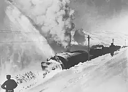 The following year NSB launched the "away with the steam" campaign that would replace all steam locomotives with electric or diesel traction. Since electrification was not imminent, the NSB introduced diesel traction on the Bergen Line in 1958.[34] The line was electrified in four stages, from Roa to Hønefoss on 1 February 1961, from Hønefoss to Ål on 1 December 1962, from Ål to Ustaoset on 15 December 1963 and finally from Ustaoset to Voss on 7 December 1964.[9] As the point of electrification moved across the mountain, so did the point NSB changed locomotive on the train. The new locomotive El 13 was put into service on the electric parts. The electrification cost NOK 143 million.[35]
