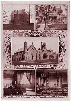 A number of campus buildings are contributing resources to the Bethany Historic District.[8] The Historic District was listed on the National Register of Historic Places in 1982.[9] Pendleton Heights was listed in 1975 and the Delta Tau Delta Founders House in 1979.[9]