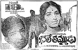 Bhale Thammudu (transl. Bravo, younger brother!) is a 1969 Indian Telugu-language action crime film co-written and directed by B. A. Subba Rao. The film stars N. T. Rama Rao and K. R. Vijaya, with music composed by T. V. Raju. It is a remake of the Hindi film China Town (1962).[1]