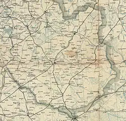 On 22 July, Hitler announced that from 1 August, Erich Koch would take over the Bialystok district and demarcate the borders of the district.[7] The borders of this area ran from the southeastern protrusion of East Prussia (the Suwalki triangle) following the Neman River up to Mosty (excluding Grodno), including Volkovysk and Pruzhany up to the Bug River to the west of Brest-Litovsk and then following the border of the General Government to East Prussia.[2]
