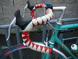 Conventional drop handlebars with harlequin cloth tape wrapping