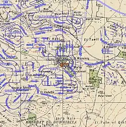1870s map 1940s map modern map 1940s with modern overlay mapA series of historical maps of the area around Bir Ma'in (click the buttons) | |