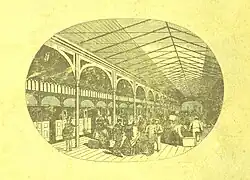 When originally built the station had five tracks and these were covered with an overall roof. The two outer tracks each had a platform – one for arrivals and one for departures – whilst the three inner tracks were used for stabling carriages between services. There were a number of small turntables that were used to transfer carriages from one track to another. The carriages at this time were based on the stagecoach design and were shorter than modern day carriages so the space required to move them between tracks was less.[4]